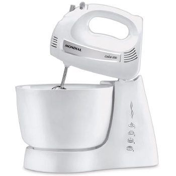 A Batedeira Mondial Cake B-50-B é um produto com ótimo custo-benefício, permite que você prepare suas receitas sem ter que bater as massas nas mãos. Acompanha um par de batedores para massas leves, perfeito para bater massas de bolos, pudins, tortas, mousses e muito mais. São 4 velocidades + Turbo, que atinge o máximo dos 500W de potência da Batedeira Mondial Cake B-50-B. Fácil de usar, assim que terminar a receita, possui botão ejetor que solta com facilidade os batedores, muito mais segurança. A tigela tem grande capacidade de 4 litros para diversos tamanhos de receitas, ou seja, você pode exagerar nas porções e fazer receitas para toda a família. Fácil de montar, potente e prática, a Batedeira Mondial Cake B-50-B vai te conquistar!