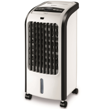 Ideal para quartos e salas ele possui painel eletrônico, controle remoto,timer de até 7 horas, Oscilação das aletas para uma distribuição inifoorme de ar, Indicador de nível de água, controle de velocidade, reservatório de água com capacidade para 6 litros e bolsa térmica.