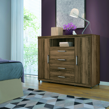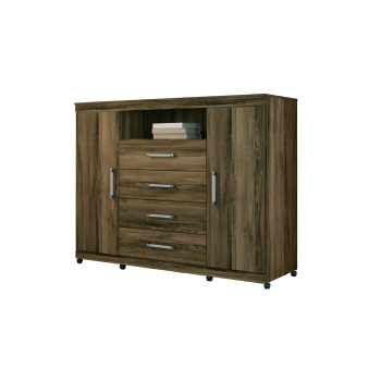 Laterais ext - MDP12mm com interno na cor ( demolição ) e externo na cor ( demolição ) e aplicação de verniz fosco com textura. Tampo - MDP12mm na cor ( demolição ) e aplicação de verniz fosco com textura. Tampo - MDP15mm na cor ( demolição) e aplicação de verniz fosco com textura. Frente de Gaveta e Portas - MDP15mm com interno na cor ( demolição ) e externo na cor (demolição) e aplicação de verniz fosco com textura. Vista sup/inf - MDP15mm com aplicação de tinta ( demolição ) e aplicação de verniz fosco com textura. - 02 portas com dobradiças metálicas - 04 gavetas com corrediças metálicas - 02 prateleiras - 01 cabideiro metálico alumínio - Local para acomodar aparelho de DVD - Puxadores em alumínio - 08 RODÍZIOS -Altura 1030 -largura 1290 -Peso 47 -Profundidade 468
