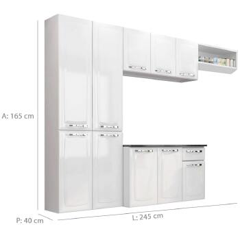 Descrição A cozinha de aço Amanda foi criada para atender a consumidora que tem pouco espaço, mas quer uma cozinha organizada e com a qualidade Itatiaia. Uma cozinha que une conforto e praticidade na medida certa, tem capacidade de armazenamento de 711 litros, espaço perfeito para organização de pratos, panelas, eletrodomésticos e mantimentos. Possui puxadores metalizados e ergonômicos e feita em aço revestido com pintura eletrostática a pó: sistema de revestimento moderno, muito durável e não poluente. Características: Estrutura geral prod.: aço Quantidade de portas: 10 Quantidade de gavetas: 1 Quantidade de prateleiras/base: 8 Material pés: não acompanha Corrediças: telescópica Dobradiças: metálica 26 mm Puxadores: puxadores em ps metalizado Acompanha tampo: sim Material tampo: mdp ff granito onix Dimensões do produto: Altura: 165cm Largura: 245cm Profundidade: 40cm Peso 47.64kg Garantia do fornecedor de 03 Meses