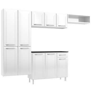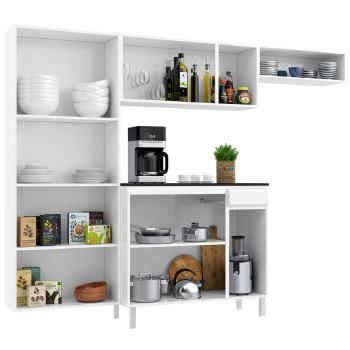 A Topázio Smart é composta por quatro peças, sendo um paneleiro duplo com quatro portas, um armário triplo, um nicho e um balcão triplo de 1 gaveta, tudo feito em aço da melhor qualidade. Os produtos passam por um processo de pintura eletrostática e anticorrosiva, que garante durabilidade e resistência.