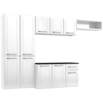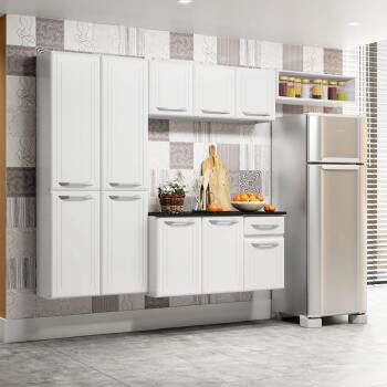 Com o armário, o paneleiro e o balcão você tem espaço suficiente para guardar panelas, louças e alimentos. O balcão possui ainda uma gaveta, fabricada em polipropileno, plástico rígido e resistente, que tem capacidade para suportar até 5kg.