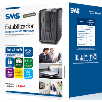 Descrição Compacto e resistente, o Estabilizador 300Va 115/115V Revolution Speedy da SMS é o mais seguro