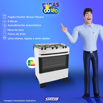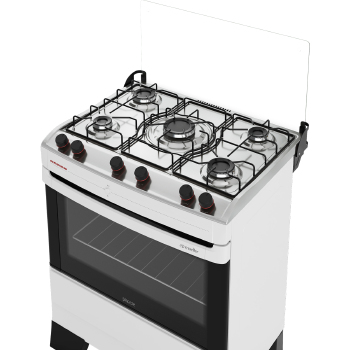 O novo fogão Piacere 5 bocas com mesa de inox traz estilo e alegria para sua cozinha através de seus anéis vermelhos. Com acendimento automático e diferentes tipos de queimadores, ainda possui um queimador central ultra chama para você preparar seus pratos de forma mais rápida. O forno ainda conta com acabamento total clean e uma grade com altura ajustável.