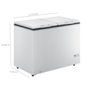 Descrição O Freezer Horizontal CHB42 com 414 litros possui controle eletrônico, para você programar a temperatura facilmente. Flexível, permite escolher entre os modos freezer ou refrigerador, de acordo com a sua necessidade. É prático de limpar com o dreno frontal e possui 4 rodinhas nos pés, que facilitam a movimentação do produto. Também é super econômico, pois tem classificação energética A, além do interior feito com liga metálica de alta resistência à corrosão. Características: Controle Eletrônico: Programe a temperatura desejada em apenas um toque e escolha entre os modos freezer ou refrigerador, de acordo com a sua necessidade. Prático: Prático de limpar com o dreno frontal; basta colocar uma vasilha embaixo do dreno para recolher o gelo derretido. Também possui 4 rodinhas nos pés, que facilitam a movimentação do produto. Econômico: Classificação A nos testes de consumo de energia do Inmetro. Especificações técnicas: Tipo de produto: horizontal Tipo de degelo: manual Método de preparo: 1 Capacidade líquida: 404 Litros Número de portas: 2 Painel de controle: externo Controle de temperatura: sim Plugue e tomada: 10 a Classificação energética (127 v):a Classificação energética (220 v):a Certificação do inmetro: pbe Nível de ruído (dba): 42 Tipo do puxador: externo Localização do cabo de alimentação (visão frontal): inferior direito Painel de controle: externo Tipo de controle do painel: eletrônico Tipo de display: led Controle de temperatura: sim Número de níveis de temperatura: 6 Função trava painel: não Aviso de porta aberta: não Aviso troca filtro: não Aviso de falhas no sistema: não Chave de segurança: não Função turbo freezer: geral,carnes,bebidas,sobremesas Ice maker: não Compartimento de congelamento rápido: sim Compartimento para gelo: não Dreno de degelo: sim Prateleiras com regulagem de altura: não Prateleiras, cestos e gavetas removíveis: grade Pés: sim Pés com rodízios: sim Potência 127v (w): 130 Potência 220v (w): 120 Consumo aproximado de energia 127v (kwh): 57.18 Consumo aproximado de energia 220v (kwh): 57.18 Consumo de energia em modo standby 127v (kwh): 0.35 Consumo de energia em modo standby 220v (kwh): 0.45 Corrente (amperagem) 127v (a): 2.7 Frequência 127v (hz): 60 Corrente (amperagem) 220v (a): 1.3 Frequência 220v (hz): 60 Dimensões: Largura: 119.5cm Altura: 94cm Profundidade: 78cm Peso líquido: 61kg Garantia do fornecedor de 12 meses.