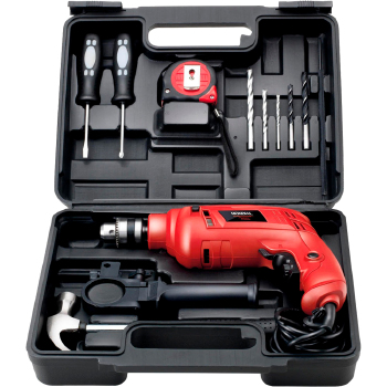 Descrição Estantes, armários, suportes para TV, tudo o que é instalado nas paredes precisa estar bem fixo. Embutir fios, colocar lustres, para todas estas tarefas que você sempre tem em casa, o ideal é ter a Kit Oficina Furadeira de Impacto Mondial 600W. Velocidade de 2.200 rpm a 2.800 rpm, potência de 600W. Acompanha 02 brocas para madeira, 3 brocas para concreto, 01 martelo, 01 empunhadura, 01 trena, 01 chave de fenda, 01 chave philips, 01 régua de profundidade e 01 chave de brocas. Faça suas tarefas com mais segurança e praticidade com a Kit Oficina Furadeira de Impacto Mondial 600W.