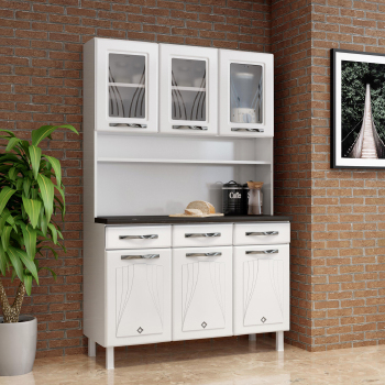 Descrição Kit Cozinha 3 Portas Vidro 3 Gavetas Telasul Star, para sua cozinha ficar muito mais aconchegante! Características: Pintura eletrostática a pó, mais resistência e durabilidade ao produto Puxadores em acrílico, mais beleza ao produto Pés reguláveis, se adaptam a qualquer piso Gavetas plásticas com corrediças metálicas, fáceis de limpar e resistência de peso de até 5 kg Vidros temperados e serigrafados, mais segurança e beleza ao produto Produto ideal para ambientes de espaço reduzido ou até mesmo como complemento da sua cozinha Dimensões Aproximadas do Produto: Altura: 193cm Largura: 120cm Profundidade: 52cm Peso: 50,7Kg Garantia do Fornecedor de 12 meses