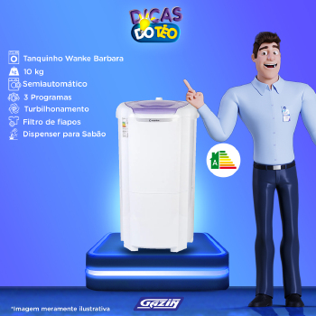 Descrição Resistente, prática e econômica, Lavadora de Roupas 10Kg Wanke Barbara 11200002 gasta menos água por ciclo de lavagem e garante um melhor aproveitamento do sabão em pó, líquido e amaciante.