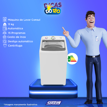 Já pensou em lavar mais gastando menos? A Lavadora Consul 11kg conta com o sistema Dosagem Extra Fácil, você economiza até 70%* de sabão em pó, e ainda garante que até seu edredom fica bem lavado, com o Ciclo Edredom Bem pensado, né?