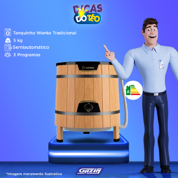 Lavagem por Agitação, timer com 3 programas de lavagem, Agitador removivel, saída de agua por gravidade, mangueira de entrada d'agua acoplada ao gabinete, gabinete em Madeira de reflorestamento, Madeira com tratamento para aumentar durabilidade do produto.