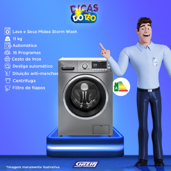 A nova Lava & Seca Midea Storm Wash traz tecnologias exclusivas e soluções inteligentes que entregam uma excelente performance de lavagem e secagem com muita eficiência.