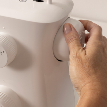 Braço livre que facilita costura em mangas, punhos