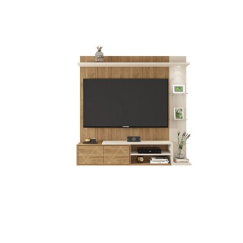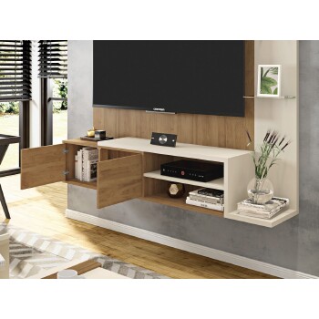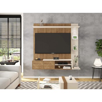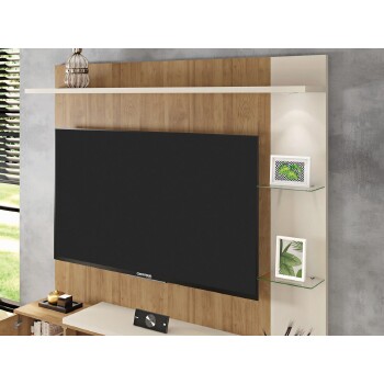 O Painel Tramma 1.6 da Caemmun possui diferenciais exclusivos para sua sala! O painel comporta TV de até 55 polegadas, com 1.60m de largura têm atributos contemporâneos e design exclusivo, prateleira superior de 25mm e led embutido, 02 prateleiras laterais de vidro, portas em MDF com detalhe de frisos e fecho toque, tampo bipartido em mdp de 25mm, nicho para eletrônicos com prateleira dividindo os espaços e prateleira lateral em MDP de 25mm. O Tramma possui versões nas cores exclusivas Buriti/Off White e Jatobá/Off White em pintura UV e acabamento de qualidade, suas dimensões 1608mm (L) x 1600mm (A) x 325mm (P), irá proporcionar mais beleza para sua sala de estar.