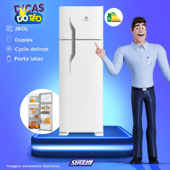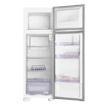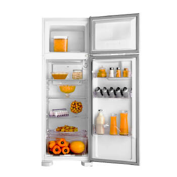 Especificações Técnicas: Tipo : Duplex Cycle Defrost Prateleira da porta com trava para garrafas: Sim Prateleiras na porta: Prateleira para garrafas de até 2,5 L Prateleiras no refrigerador: Aramadas; 100 removíveis Gavetão transparente para frutas e verduras: Sim Prateleira porta latas : Reversível para 5 unidades Livre de CFC: Sim Puxador ergonômico embutido Consumo: 38,4 kWh Controle de Temperatura Interna Porta ovos para até: 12 unidades com cesta removível Capacidade Liquida: Freezer: 53; Refrigerador: 207; Total: 260 Capacidade Bruta: Freezer: 53; Refrigerador: 211; Capacidade total: 264 Pés: Rodízios traseiros; Niveladores dianteiros