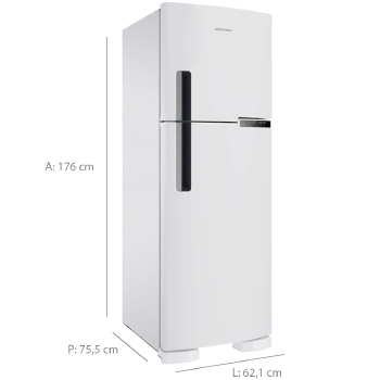 220V - 54 kWh Capacidade Total (L): 375 Capacidade Freezer (L): 86 Dispenser de água: Não Prateleiras removíveis: Sim Tipo de Degelo: Frost Free Dimensões com embalagem (LxAxP) (cm): 65 x 180 x 74,7 Recipiente para guardar gelo: Sim Compartimento extra frio: Sim Capacidade Geladeira (L): 288 Porta ovos: Sim Porta latas: Sim Alarme de porta aberta: Não Pés niveladores: Sim Porta reversível: Não Display: Eletrônico Controle de temperatura: Sim Mostrador frontal de temperatura: Sim Nº de Portas: 2 Painel de Controle: Externo Formato: Duplex