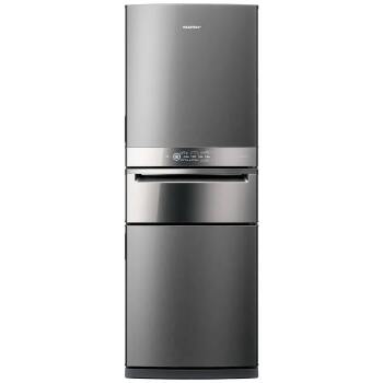 Escolha entre 4 modos de temperatura diferentes para esse compartimento: Conservar as carnes por até 10 dias sem congelar*, deixar a cerveja a -4ºC, utilizar a função Frios e Laticínios para alimentos mais perecíveis ou armazenar seus vinhos e espumantes na temperatura ideal. *respeitada a data de validade impressa na embalagem. Turbo Ice. Sempre que precisar conte com a função Turbo Ice e tenha gelo pronto em até 3 horas, apenas acionando o botão no painel no exterior do produto. Twist Ice Advanced. O exclusivo sistema Twist Ice Advanced permite abastecer as formas de gelo sem molhar o chão, além de desenformar o gelo facilmente e armazená-lo em um recipiente portátil e prático.