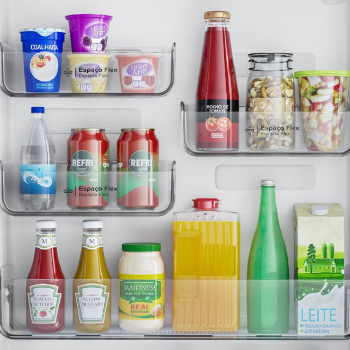 Organize o espaço interno da porta da sua geladeira de acordo com a sua necessidade: são mais de 10 combinações possíveis para garantir mais flexibilidade e praticidade no seu dia a dia ao armazenar garrafas, jarras e diferentes itens!