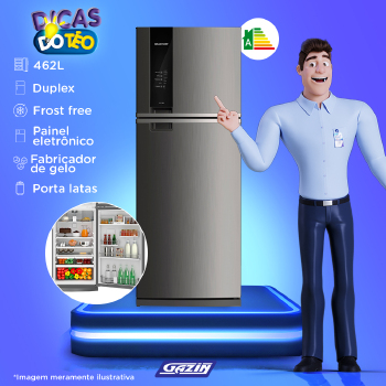 Descrição Com a Geladeira Brastemp Frost Free Duplex BRM56 462 litros Evox, tenha gelo mais rápido sempre que precisar com a função Turbo Ice e saiba quando está pronto. O Twist Ice Advanced permite abastecer as formas de gelo e desenformá-lo facilmente, e com o Espaço Adapt você conta com prateleiras ajustáveis para armazenar itens de diversos tamanhos. Possui ainda o compartimento bipartido Turbo Control, que permite aumentar a potência em um dos lados para gelar bebidas e sobremesas ainda mais rápido. Características: Capacidade: Acima de 400 Litros Cor da Porta: Inox Cor do Gabinete: Pintado cinza Material: Gabinete (externo) Pintado cinza Porta EVOX Puxadores Injetado na cor com acabamento metálico Frost Free: Sim Quantidade de Portas: 2 Dispenser na Porta: Não Trava de Segurança no Dispenser: Não Display: LED Prateleiras/Cestos: 3 prateleiras vidro, 1 gaveta de legumes, 2 gavetas de frutas, Porta: 2 prat. temperos, 2 prateleiras adapt, 1 prateleira com acesso rápido, 1 prateleira inferior Controle de Temperatura: SIM Porta-Latas: SIM Porta-Ovos: SIM Gavetas: SIM Congelamento Rápido: SIM Separador de Garrafas: SIM Iluminação Interna: SIM Bandeja de Café da Manhã Removível: NÃO Desodorizador: NÃO Elimina Bactérias: NÃO Fôrma de Gelo: SIM Gelo Fácil: NÃO Raspador de Gelo: NÃO Pés: SIM Rodízios: SIM Porta Reversível: Não Puxadores:: Injetado na cor com acabamento metálico Alarme Sonoro na Porta: Não Condensador Embutido: Não Eficiência Energética: A Alimentação: Elétrico Potência: 115W Capacidade de Água do Dispenser: N/A Capacidade Total: 462 Capacidade de Armazenagem do Refrigerador: 362 Capacidade de Armazenagem do Freezer: 100 Capacidade de Armazenagem Total: 462 Modelos: sim Referência do Modelo: BRM56AK Linha/Coleção: Tarantino Dimensões: Altura: 184cm Largura: 70,1cm Profundidade: 72,5cm Peso: 80kg Garantia do fornecedor de 12 meses.