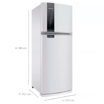 Descrição Com a Geladeira Brastemp Frost Free Duplex BRM56 462 litros, tenha gelo mais rápido sempre que precisar com a função Turbo Ice e saiba quando está pronto. O Twist Ice Advanced permite abastecer as formas de gelo e desenformá-lo facilmente, e com o Espaço Adapt você conta com prateleiras ajustáveis para armazenar itens de diversos tamanhos. Possui ainda com o compartimento bipartido Turbo Control, que permite aumentar a potência em um dos lados para gelar bebidas e sobremesas ainda mais rápido. Características: Capacidade: Acima de 400 Litros Material: Gabinete Porta Pintada branca Puxadores Injetados na cor com acabamento metálico Frost Free: Sim Quantidade de Portas: 2 Dispenser na Porta: Não Trava de Segurança no Dispenser: Não Display: LED Prateleiras/Cestos: 3 prateleiras vidro, 1 gaveta de legumes, 2 gavetas de frutas, Porta: 2 prat. temperos, 2 prateleiras adapt, 1 prateleira com acesso rápido, 1 prateleira inferior Controle de Temperatura: Sim Porta-Latas: Sim Porta-Ovos: Sim Gavetas: Sim Congelamento Rápido: Sim Separador de Garrafas: Sim Iluminação Interna: Sim Bandeja de Café da Manhã Removível: Não Desodorizador: Não Elimina Bactérias: Não Fôrma de Gelo: Sim Gelo Fácil: Não Raspador de Gelo: Não Pés: Sim Rodízios: Sim Porta Reversível: Não Puxadores: Injetado na cor com acabamento metálico Alarme Sonoro na Porta: Não Condensador Embutido: Não Eficiência Energética: A Alimentação: Elétrico Potência: 115W Capacidade de Água do Dispenser: N/A Capacidade Total: 462 Capacidade de Armazenagem do Refrigerador: 362 Capacidade de Armazenagem do Freezer: 100 Capacidade de Armazenagem Total: 462 Modelos: sim Linha/Coleção: Tarantino Dimensões: Altura: 189cm Largura: 77cm Profundidade: 79,4cm Peso: 82kg Garantia do Fornecedor de 12 meses