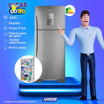 Descrição Tipo: Duplex Subcategoria: Top Freezer Degelo: Frost Free Capacidade Útil do Refrigerador (L): 368 Capacidade Útil do Freezer (L): 115 Capacidade Útil Total (L): 483 Programa Brasileiro de Etiquetagem/Eficiência Energética: A Consumo Aproximado de Energia: 39 kWh/mês Inverter: Sim Econavi: Sim Vitamin Power: Sim Anti-Bacteria: Sim Desodorizador: Sim Gavetão Horti Fruti: Sim Compartimento Extra Frio: Sim Drink Cooler: Sim Turbo Freezer: Sim Painel de Controle: Eletrônico Funções Pré Programadas: Férias, Festa e Compras Controle de Temperatura do Refrigerador Interno: Sim Controle de Temperatura do Freezer no Painel Externo: Sim Ice Twister: Sim Trava Painel: Sim Porta Latas: Sim Porta Ovos: Sim Acessórios: Porta Laticínios Iluminação: LED Quantidade de Portas: 2 Quantidade de Prateleiras no Refrigerador: 3 (Vidro Temperado) Quantidade de Prateleiras na Porta do Refrigerador: 4 Quantidade de Gavetas no Refrigerador : 2 Quantidade de Prateleiras no Freezer: 1 Quantidade de Prateleiras na Porta do Freezer: 2 Potência de Operação (W): 115 Potência de Degelo (W): 180 Sistema de Refrigeração: Serpentina com fluído R600a Tipo de Pés: Estabilizador Material: Aço