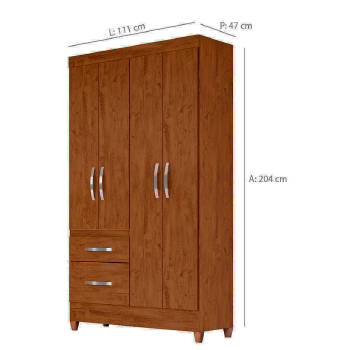 O Guarda-roupa Madri é uma ótima opção para quem precisa organizar as roupas em um ambiente compacto. Feito em MDP, possui 4 portas, 2 gavetas externas, 3 prateleiras, um cabideiro e um nicho para sapatos. Ainda conta com dobradiças e corrediças metálicas e puxadores cromados.
