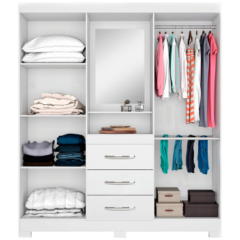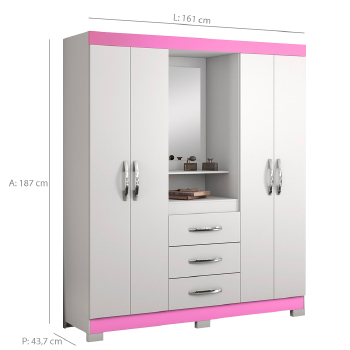 Com o Guarda-Roupa NT 5015 da Notável Móveis você não vai ter problemas com o espaço, com 5 prateleiras ,2 cabideiros e 3 gavetas que vão te permitir manter tudo organizado. Possui acabamento em impressão de alta qualidade que garante maior resistência ao móvel além de um espelho central que vai dar aquele toque de requintado ao seu quarto.