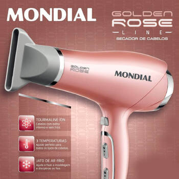 O Secador de Cabelos Golden Rose SC32 da Mondial é um produto de alto desempenho com design sofisticado e moderno que tornará o cuidado dos seus cabelos muito mais charmoso e elegante!