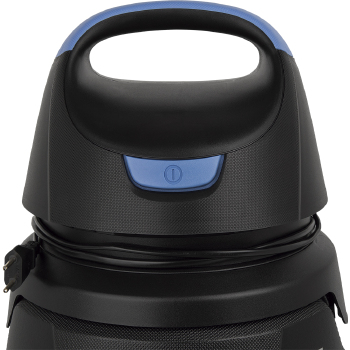 Características: Cor: preto com detalhes em azul Uso doméstico: sim Aspira água: sim Capacidade de água: 5l Capacidade do reservatório de pó: 1,2l Saco de pó: de papel descartável (cse10) Regulagem de potência: não Função sopro: sim Extensões: 2 tubos plásticos Raio de ação: 4,5m Tamanho da mangueira : 1,2m Tamanho do cabo: 2,0m Rodas: sim, facilitam o transporte. Não riscam o piso. Sistema de tripla filtragem sim Porta acessórios: não Cabo elétrico: possui suporte para o mesmo Acessórios bocal canto para cantos/frestas. Bocal para pisos, carpetes ou tapetes. Tubo prolongador de plástico