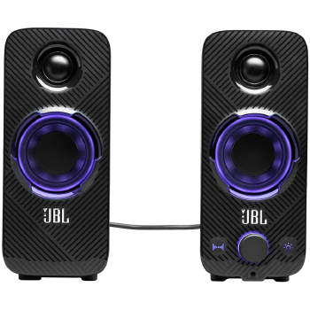 Turbine sua plataforma de jogo com efeitos de iluminação sensacionais que o levarão mais fundo na ação. Os alto-falantes Quantum Duo para jogos em PC da JBL vêm com diferentes pré-configurações de cores e padrões de iluminação. Crie o clima facilmente com o botão de controle de iluminação.