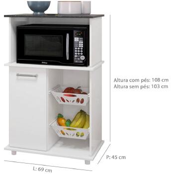 Descrição BALCAO FRUTEIRA NICIOLI MALU 1 PORTA Características: Pintura UV 100 em chapa de 15 mm MDP Puxadores Polipropileno Dimensões Aproximadas: Altura: 108,5 cm Largura: 69 cm Profundidade: 45 cm Peso: 25,30 kg Garantia do Fornecedor de 03 meses