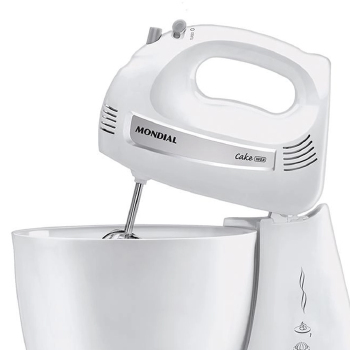 A Batedeira Mondial Cake B-50-B é um produto com ótimo custo-benefício, permite que você prepare suas receitas sem ter que bater as massas nas mãos. Acompanha um par de batedores para massas leves, perfeito para bater massas de bolos, pudins, tortas, mousses e muito mais. São 4 velocidades + Turbo, que atinge o máximo dos 500W de potência da Batedeira Mondial Cake B-50-B. Fácil de usar, assim que terminar a receita, possui botão ejetor que solta com facilidade os batedores, muito mais segurança. A tigela tem grande capacidade de 4 litros para diversos tamanhos de receitas, ou seja, você pode exagerar nas porções e fazer receitas para toda a família. Fácil de montar, potente e prática, a Batedeira Mondial Cake B-50-B vai te conquistar!