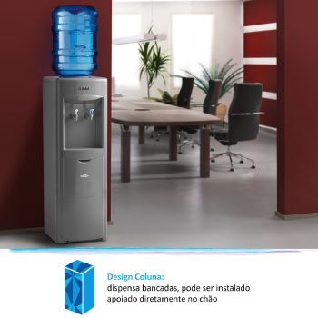 O Bebedouro GFN 2000 se adapta a qualquer ambiente sem precisar de apoio ou ponto de água.Ideal para escritórios e consumidores que fazem questão de tomar água mineral, esse produto IBBLcomporta galões de 10 ou 20 litros e oferece água em temperatura natural ou gelada, alémde ter baixo consumo de energia e nanotecnologia contra a proliferação de micro-organismos.