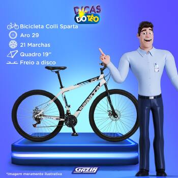 Bicicleta Colli Sparta MTB Aro 29 Aero, Freios a Disco Dianteiro e Traseiro 21Marchas ,Trocador Na Luva, Suporte de Guidão Down Hill Preto Expandido.