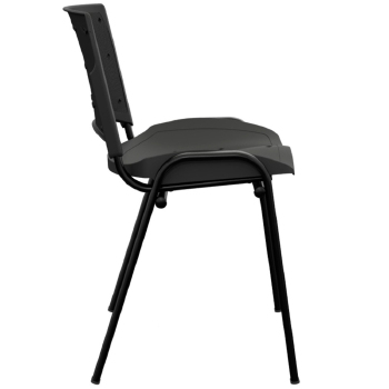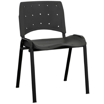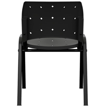 A cadeira (Figura 1) é constituída de assento e encosto plásticos, e estrutura metálica. A estrutura é composta de tubos de aço 1010 /1020, sendo os pés e suportes do assento e encosto fabricados em tubos oblongos 16x30 com 1.5mm de espessura de parede soldados com solda Mig à duas travessas horizontais de tubos de aço 7/8? x 1,2mm de espessura formando um conjunto estrutural empilhável. A estrutura recebe tratamentos químicos de fosfatização e pinturas epóxi pó. Para dar acabamento nas pontas dos tubos dos pés e travessas, a estrutura recebe ponteiras plásticas injetadas em polipropileno. A estrutura da cadeira suporta até 110 Kg. Assento confeccionado em polipropileno copolímero (PP) injetado e moldado anatomicamente com acabamento texturizado. Suas dimensões são 465mm de largura, 420mm de profundidade 5mm de espessura de parede. Possui cantos arredondados e é unido à estrutura por meio de 4 (quatro) parafuso 5x30 para plástico. A altura do assento até o chão é de 445mm. O encosto é fabricado em polipropileno copolímero injetado e moldado anatomicamente com acabamento texturizado, com dimensões de 460mm de largura por 330mm de altura, com espessura de parede de 5mm e cantos arredondados, unidos a estrutura por dupla cavidade na parte posterior do encosto que se encaixa a estrutura metálica, travada por dois pinos fixadores plásticos injetados em polipropileno copolímero, na cor do encosto, dispensando a presença de rebites ou parafusos. O encosto possui furos para ventilação. O assento e o encosto apresentam como opcional alma estofada com espuma laminada de espessura igual a 20mm e densidade 26 (Figura 2 e Figura 3). A alma estofada é montada ao assento por meio de parafusos phillips Ø3.5x8mm para plástico, e ao encosto por meio de encaixes. A cadeira também apresenta como opcional a ponteira connect, um acoplamento do tipo ?macho e fêmea? encaixado às extremidades laterais das travessas da cadeira, servindo para conectar uma cadeira à outra quando colocadas lado a lado (Figura 4). As ponteiras são produzidas em polipropileno copolímero injetado.