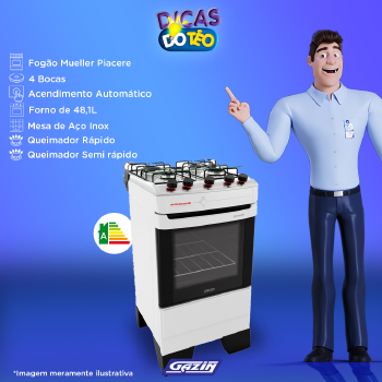 Tipo de acendimento: Acendimento automático total, na mesa e no forno