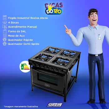 Resistente e do tamanho da sua necessidade! O fogão industrial Atena Realce 4bc, além de robustez tem mesa, trempes e queimadores com esmaltação cleartec o que proporciona maior durabilidade e facilidade na limpeza. Seu forno conta com incríveis 94 litros, além de opção de dupla entrada de gás e com possibilidade de ser direita ou esquerda, bandeja coletora de resíduos e muito mais.