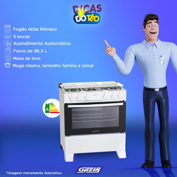 Pés novo design mais clean e mais altos, acompanha o formato frontal do fogão, além da facilidade de limpeza.