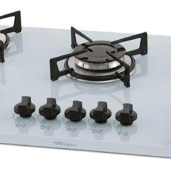 Criado para oferecer uma opção a mais ao mercado de fogões (geralmente com 4 ou 6 queimadores), o Cooktop 5 Bocas Fischer Fit Line tem mesa de vidro, acendedor inteligente e trempes individuais