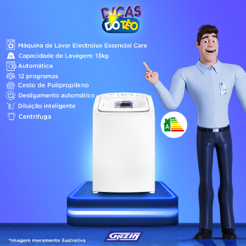 Possui a exclusiva tecla Economia. Quando acionada, reaproveita a água de lavagem, garante o melhor uso de recursos, gerando economia e menor impacto ao meio ambiente.