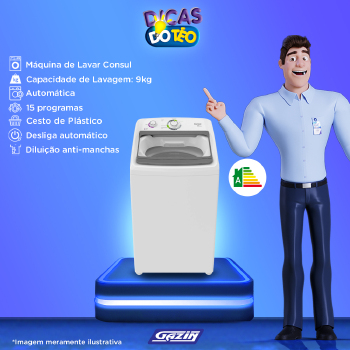 Já pensou em lavar mais gastando menos? A Lavadora Consul 9kg conta com o sistema Dosagem Extra Fácil, você economiza até 70% de sabão em pó, e ainda garante que até seu edredom fica bem lavado, com o Ciclo Edredom. E você ainda conta com o Dual Dispenser, que com o novo formato, abastecer e limpar ficou muito mais fácil. Economia e praticidade para lavar mais, gastando menos*.