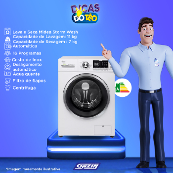 A nova Lava & Seca Midea Storm Wash traz tecnologias exclusivas e soluções inteligentes que entregam uma excelente performance de lavagem e secagem com muita eficiência.