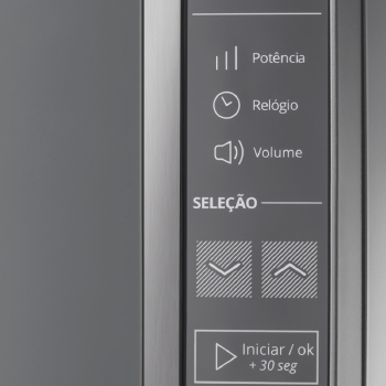 Características: Funções: Função silencioso Display: LCD Painel: Touch Prato: Giratório Receitas Pré-Programadas: Pipoca, Bolo de Caneca, Risoto, Brigadeiro Níveis de Potência: 10 Teclas: Pipoca, Bolo de Caneca, Risoto, Brigadeiro Timer: SIM Relógio: Sim Trava de Segurança: Sim Puxador: EMBUTIDO Consumo Aproximado de Energia: 1.4 Potência: 900 Capacidade: 32 litros