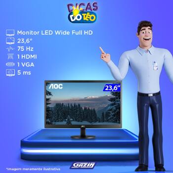Itens inclusos na embalagem: Cabo de força, cabo VGA, certificado de garantia, base e monitor