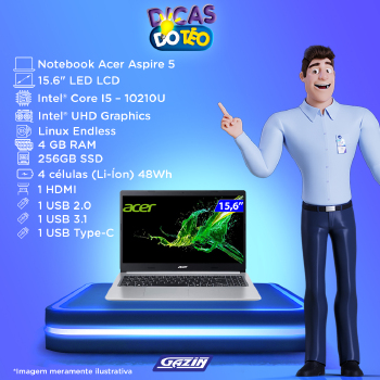 Armazenamento: 256GB SDD PCIe 3.0 x 2 NVMe (M.2 2280)