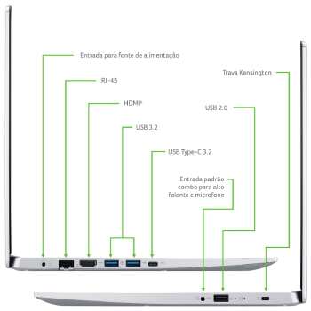 LAN/Rede com fio: Gigabit Ethernet 10/100/1000 (RJ45) com suporte a Wake on LAN BATERIA