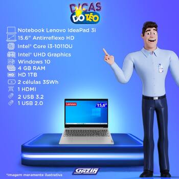Lenovo IdeaPad 3i possui design leve e compacto. Com tela antirreflexo de 15.6" para mais conforto visual. Notebook ideal para todos os momentos. Conta com WiFi AC ultrarrápido e teclado numérico para trabalhar com mais agilidade nas suas planilhas. Possibilidade de utilizar o armazenamento de forma híbrida e ganhar muito mais agilidade e produtividade no seu dia a dia. Com o slot disponível, você tem a opção de adicionar um SSD NVMe M.2 para ter mais segurança ao armazenar seus dados. Nitidez e alta qualidade de som com certificação Dolby Audio. Sua privacidade pessoal é muito iLenovo IdeaPad 3i possui design leve e compacto. Com tela antirreflexo de 15.6" para mais conforto visual. Notebook ideal para todos os momentos. Conta com WiFi AC ultrarrápido e teclado numérico para trabalhar com mais agilidade nas suas planilhas. Possibilidade de utilizar o armazenamento de forma híbrida e ganhar muito mais agilidade e produtividade no seu dia a dia. Com o slot disponível, você tem a opção de adicionar um SSD NVMe M.2 para ter mais segurança ao armazenar seus dados. Nitidez e alta qualidade de som com certificação Dolby Audio. Sua privacidade pessoal é muito importante. É por isso que o IdeaPad 3i está equipado com porta de privacidade da webcam. Quando não estiver em uma chamada de vídeo ou gravando algo, basta deslizá-la. Faça vídeo-conferências em alta-definição com a câmera HD-720p.mportante. É por isso que o IdeaPad 3i está equipado com porta de privacidade da webcam. Quando não estiver em uma chamada de vídeo ou gravando algo, basta deslizá-la. Faça vídeo-conferências em alta-definição com a câmera HD-720p.