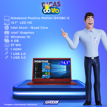 Leitor de Cartões: Micro SD, suporta padrões SDHC e SDXC até 128GB