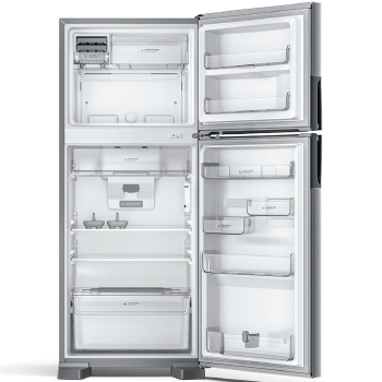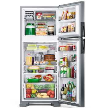 Prateleiras do refrigerador em vidro com moldura plástica. prateleiras de porta. gavetas e cestos em plástico injetado.