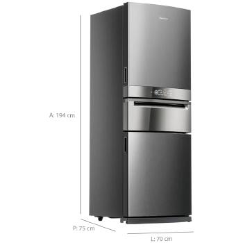 Escolha entre 4 modos de temperatura diferentes para esse compartimento: Conservar as carnes por até 10 dias sem congelar*, deixar a cerveja a -4ºC, utilizar a função Frios e Laticínios para alimentos mais perecíveis ou armazenar seus vinhos e espumantes na temperatura ideal. *respeitada a data de validade impressa na embalagem. Turbo Ice. Sempre que precisar conte com a função Turbo Ice e tenha gelo pronto em até 3 horas, apenas acionando o botão no painel no exterior do produto. Twist Ice Advanced. O exclusivo sistema Twist Ice Advanced permite abastecer as formas de gelo sem molhar o chão, além de desenformar o gelo facilmente e armazená-lo em um recipiente portátil e prático.
