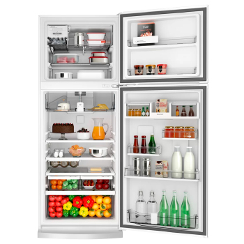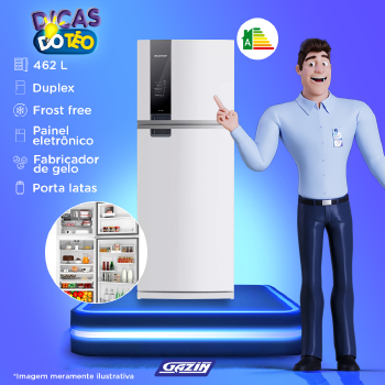 Descrição Com a Geladeira Brastemp Frost Free Duplex BRM56 462 litros, tenha gelo mais rápido sempre que precisar com a função Turbo Ice e saiba quando está pronto. O Twist Ice Advanced permite abastecer as formas de gelo e desenformá-lo facilmente, e com o Espaço Adapt você conta com prateleiras ajustáveis para armazenar itens de diversos tamanhos. Possui ainda com o compartimento bipartido Turbo Control, que permite aumentar a potência em um dos lados para gelar bebidas e sobremesas ainda mais rápido. Características: Capacidade: Acima de 400 Litros Material: Gabinete Porta Pintada branca Puxadores Injetados na cor com acabamento metálico Frost Free: Sim Quantidade de Portas: 2 Dispenser na Porta: Não Trava de Segurança no Dispenser: Não Display: LED Prateleiras/Cestos: 3 prateleiras vidro, 1 gaveta de legumes, 2 gavetas de frutas, Porta: 2 prat. temperos, 2 prateleiras adapt, 1 prateleira com acesso rápido, 1 prateleira inferior Controle de Temperatura: Sim Porta-Latas: Sim Porta-Ovos: Sim Gavetas: Sim Congelamento Rápido: Sim Separador de Garrafas: Sim Iluminação Interna: Sim Bandeja de Café da Manhã Removível: Não Desodorizador: Não Elimina Bactérias: Não Fôrma de Gelo: Sim Gelo Fácil: Não Raspador de Gelo: Não Pés: Sim Rodízios: Sim Porta Reversível: Não Puxadores: Injetado na cor com acabamento metálico Alarme Sonoro na Porta: Não Condensador Embutido: Não Eficiência Energética: A Alimentação: Elétrico Potência: 115W Capacidade de Água do Dispenser: N/A Capacidade Total: 462 Capacidade de Armazenagem do Refrigerador: 362 Capacidade de Armazenagem do Freezer: 100 Capacidade de Armazenagem Total: 462 Modelos: sim Linha/Coleção: Tarantino Dimensões: Altura: 189cm Largura: 77cm Profundidade: 79,4cm Peso: 82kg Garantia do Fornecedor de 12 meses